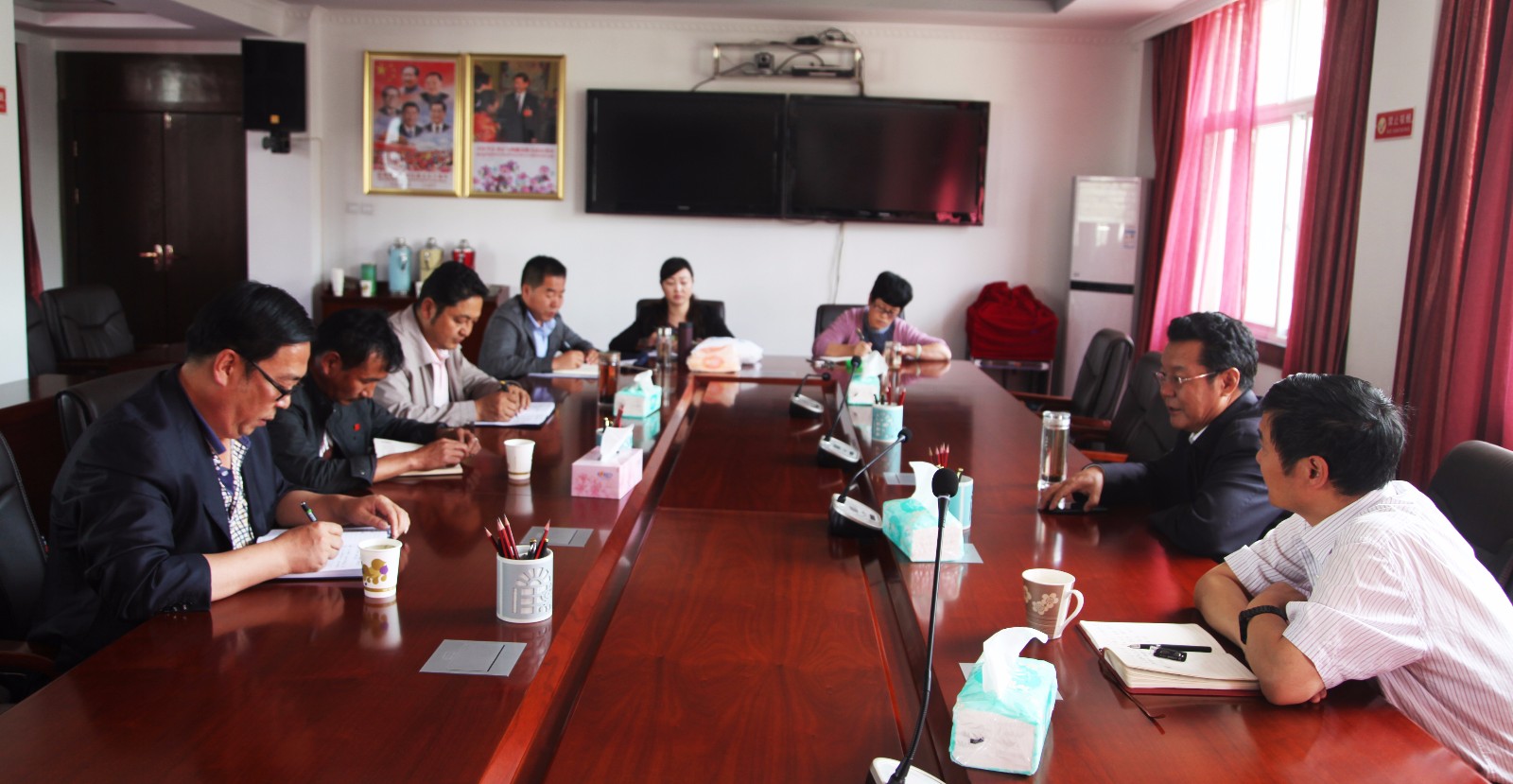 2017年9月30日下午,地勘局党委召开欢送局系统出席党的十九大代表座谈会。局党委书记巴桑同志主持,副局长郭兴华、出席党的十九大代表向巴扎西和地质六队、政工人事处相关人员参加了会议。
