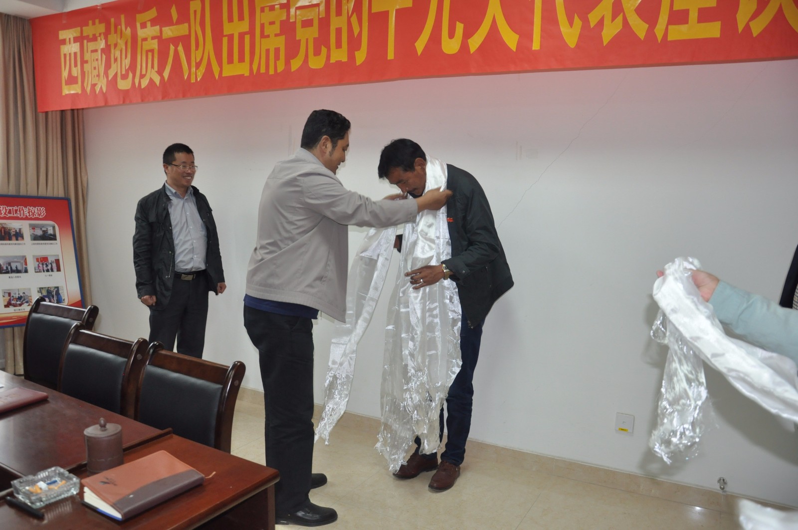 队党委书记戴平指出,向巴扎西同志经过逐级推荐,逐级遴选,最终当选为党的十九大代表,这是地质六队历史以来当选的第一位基层党代表,代表的是全队92名党员,是全队的荣誉,我们倍感自豪。在向巴扎西同志身上集中体现了共产党员的先进性和纯洁性学习,广大党员干部要向榜样学习,学习他任劳任怨、不怕吃苦、不计个人得失、艰苦奋斗的高贵品质和工作作风,以学促用,把各自工作再压实压紧,以优异成绩迎接党的十九大胜利召开。戴平书记强调,向巴扎西同志肩负着全局人民的期望和重托,使命光荣,责任重大。希望向巴扎西同志在会议期间履行好党代表的神圣职责,踊跃发言,多宣传我们西藏地质工作和西藏地勘队伍的情况,积极建言献策。回来后,第一时间将参加会议的感受、体会和收获与广大党员干部进行分享,做党的十九大精神的宣传员和践行者。