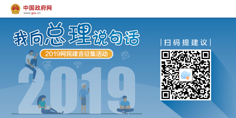 扫描二维码,参与2019“我向总理说句话”网民建言征集活动,为政府工作提意见建议。