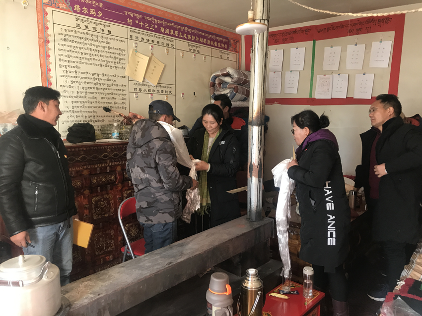 2019年12月2日至6日,区地勘局副巡视员卓玛带领局地质工会副主席单增平措、局机关工会副调研员达娃白玛和局强基办工作人员次旦扎西,深入日喀则市昂仁县亚木乡许如村、那曲地区申扎县塔尔玛乡格玛村、色地村、多琼村,雄梅镇达国村、许隆村、曲志德吉村、贡琼村、多绕村看望慰问了9个驻村工作队,为坚守在驻村一线的驻村工作队员带去了地勘局党委的关心和慰问。