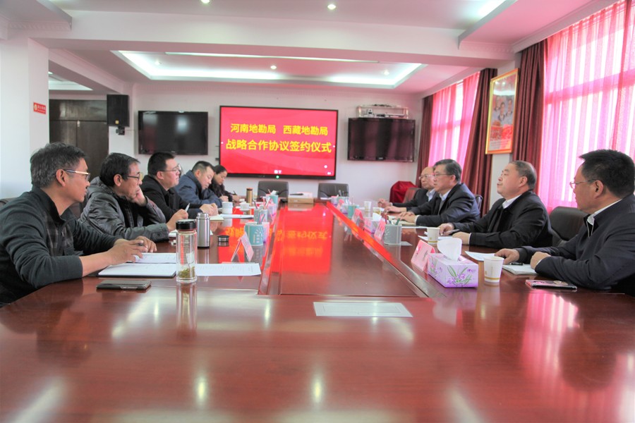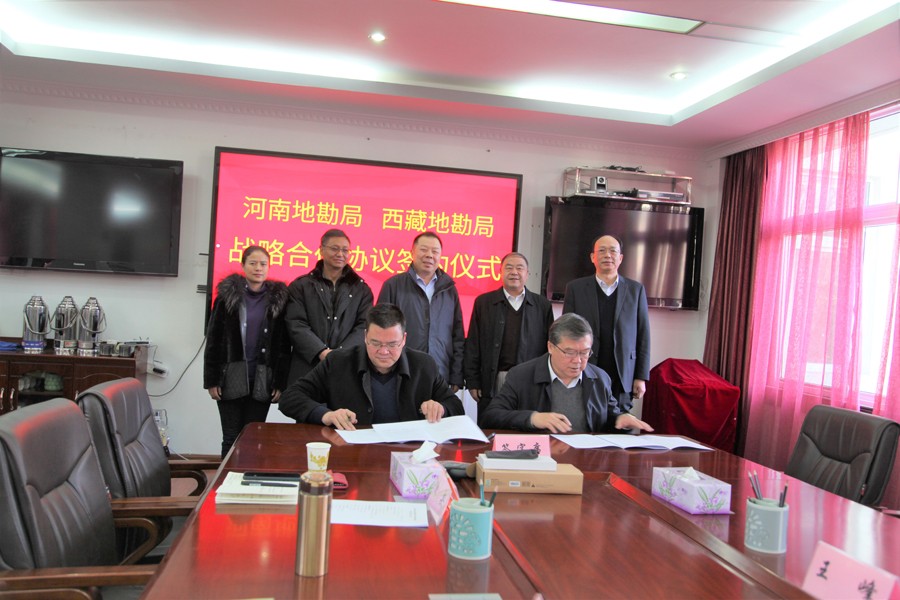 12月26日,西藏地勘局与河南地勘局战略合作签约仪式在拉萨举行。河南省地勘局党组成员、副局长李兴国、西藏地勘局党委委员、副局长张焕彬、谢渊以及双方相关处室负责人出席了签约仪式。签约仪式由西藏地勘局副局长张焕彬主持。