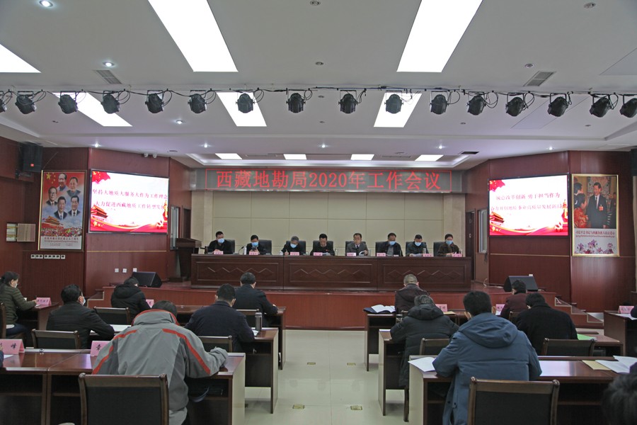 局党委副书记、局长王衍彪作工作报告。《报告》从11个方面回顾了2019年全局各项工作取得的成绩,并分析了目前存在的问题和面临的机遇与挑战。同时,明确了局2020年工作总体要求、目标任务和重点工作。一是立足地质主业,围绕中央对西藏战略定位和自治区经济社会发展需求持续开展重点工作;二是密切结合实际,按照中央及自治区统一部署,逐步有序推动全局事业单位改革工作;三是积极推动盛源矿业集团整合重组后的实体运行,加强经营性资产监管,努力探索全局经营性资产的管理改革;四是加强干部人才队伍建设,努力锻造一支政治过硬、业务精湛、装备精良、服务到位的高原地质队伍;五是实施科技创新,贯彻新发展理念,扩大外向交流合作,促进西藏地质工作高质量发展;六是坚持改革创新,加强内部管理,确保地勘工作有序开展,地勘经济有序运行;七是巩固“不忘初心、牢记使命”主题教育成果,不断推进党的建设,为地质事业改革发展稳定提供组织保证和动力源泉。