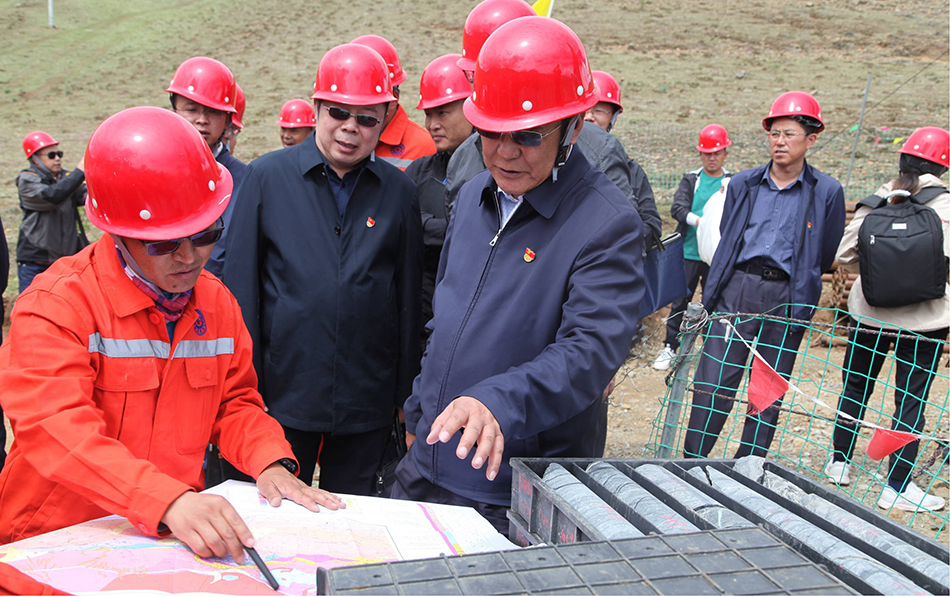 接着,巴桑书记走近钻井作业平台,伴着机器轰鸣声,认真查看了钻机运转情况,详细询问了钻井深度、岩芯采样率、环境保护和安全生产防护措施等落实情况。他一边查看一边叮嘱,要切实保证钻探工程质量,更要落实好安全生产操作规程,确保工作人员生命财产安全。
