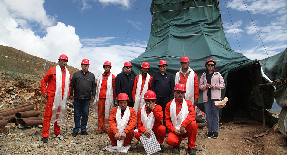 天蓝水清,碧草如茵。6月10日,局党组书记、副局长巴桑,局党组成员、副局长谢渊与局属单位及局机关党员领导干部和相关部门负责人、支部书记代表一同前往地质六队位于山南市曲松县海拔近4500米的罗布莎铬铁矿勘查项目部,一同观摩学习野外“帐篷支部”的好经验好做法,切身体验钻井作业平台干部职工忘我的工作状态和艰苦的生活环境,进一步激发广大党员干部职工“以献身地质事业为荣,以艰苦奋斗为荣,以找矿立功为荣”的地质“三光荣”精神。