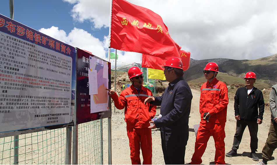 巴桑书记一行首先来到岩芯存放区,仔细查看岩芯采样情况,认真聆听工作人员关于罗布莎铬铁矿成矿带及探明储量情况介绍,不时询问资源品位及储量等情况,同时对下一步找矿工作有针对性地提出了指导性建议。