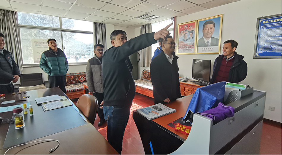 杨安文局长通过调研,对地质二队各项工作给予了充分肯定,并就做好下一步工作提出了具体的要求和殷切希望:一是要认真贯彻落实党中央、区党委和局党组的决策部署,认真学习习近平总书记的重要讲话、重要指示、重要贺信精神,认真学习中央第七次西藏工作座谈会精神、习近平总书记关于西藏工作的重要论述和新时代党的治藏方略以及习近平总书记在西藏考察时的重要讲话精神,认真学习党的十九届六中全会精神和自治区党委书记王君正重要讲话精神,将学习成果转化为履职尽责的行动自觉,主动担当、积极作为,不断提高干事创业的能力水平,扎实做好各项工作。二是要团结一致,全力以赴完成今年的生产目标,保质保量完成各项任务,认真总结好今年的各项工作,及时谋划好来年的各项工作任务,制定有效措施,在推动单位转型发展、促进“五型”地勘单位建设和服务好“抵边强边”建设作出积极的贡献。三是要时刻紧绷安全生产之弦,扎实抓好安全生产工作,首先要认真开展好院内及周边商铺安全隐患排查整治工作,其次要加强对各项目点、驻村点的安全监督检查,认真做好各个野外项目的收官工作,尤其是项目上的设备保管和人员撤离等工作。同时,要加强新冠疫情防控工作,落实疫情防控各项措施,保障职工生命财产安全,确保各领域安全、稳定、和谐。四是要关心关爱干部职工,深化党史学习专题教育成果,扎实开展“我为群众办实事”实践活动,竭尽所能为干部职工提供优质的办公、居住和生活环境。同时,认真听取职工反映的“热点、难点”问题,主动联系、主动服务,为职工办实事、解难题,不断提高职工的归属感和幸福感。