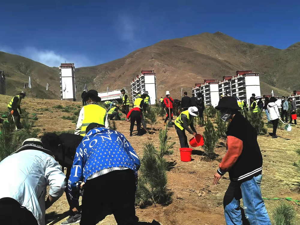 开工仪式结束后,集团公司组织开展“传承地质三光荣,绿化拉萨南北山”植树活动,大家现场分工协作,一派热火朝天的劳动景象。