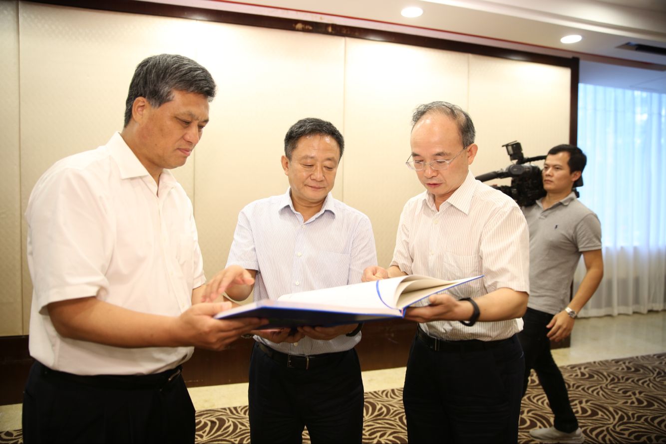 钟自然向广东省省长马兴瑞赠送了《粤港澳大湾区自然资源与环境图集》。