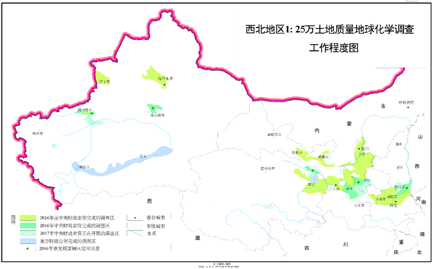 西北地区1:25万土地质量地球化学调查工作程度图