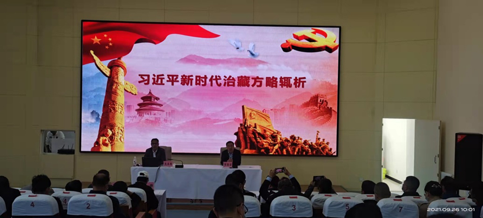 9月26日,为深入学习贯彻习近平新时代中国特色社会主义思想特别是新时代党的治藏方略和习近平总书记视察西藏重要讲话精神,西藏自治区人民政府驻格尔木办事处(藏青工业园区管委会)邀请自治区宣讲团成员、西藏民族大学副校长史本林教授赴格开展新时代党的治藏方略和习近平总书记视察西藏重要讲话精神宣讲报告会。地质五队党委委员、副队长李玉昌和党委委员、纪委书记张彦军及在队党员干部23人与格办(管委会)基地各单位党员200余人共同聆听史教授作题为《习近平新时代党的治藏方略辄析》和《铭记领袖万般恩 书写高原一片红》两场宣讲报告。报告会由格办(管委会)党组副书记、主任张国宏主持。