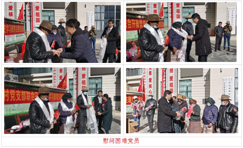 活动当天,地调院党总支书记强巴曲宗和副院长杨志斌、次吉拉姆及地质文化村项目野外党小组成员同叶巴村党支部书记边巴曲扎及村两委成员就下一步如何推进地质文化村申报事宜进行了座谈交流,并慰问了叶巴村困难老党员。