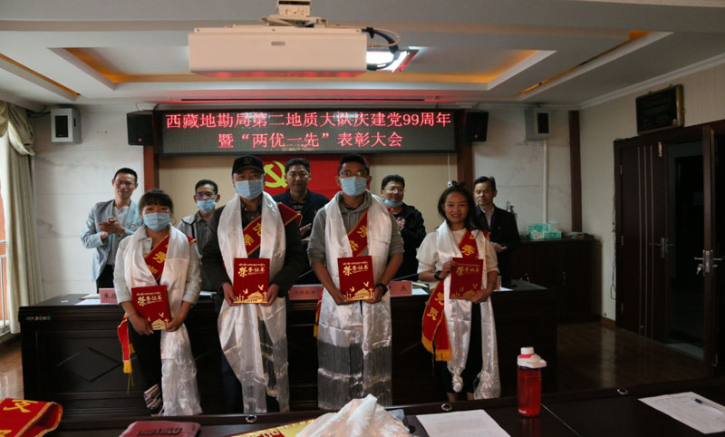 会上,党委书记次旺欧珠带领全体党员面向党旗,重温入党誓词,重忆入党初心。党委委员、纪委书记罗杰宣读了《地质二队关于表彰先进基层党支部和先进个人的决定》。队党委班子成员分别为“两优一先”代表颁发了荣誉证书,激励广大党员干部时刻牢记党的根本宗旨和自己身上肩负的光荣使命,号召全体干部职工学习先进,积极工作,优秀共产党员和优秀党务工作者代表作了专题发言。
