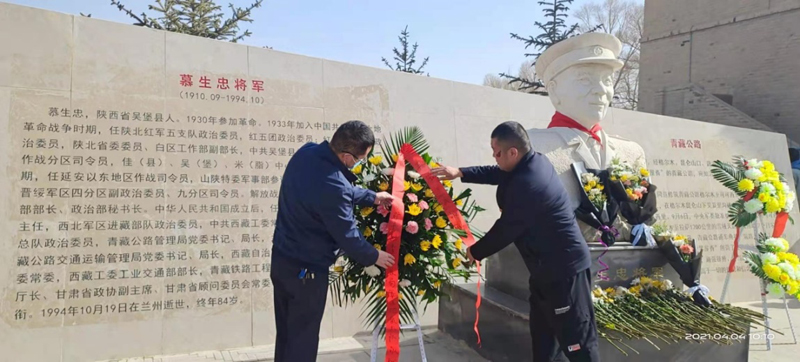 又是一年春草绿,又是一年清明时。清明节当天,五队党史学习教育领导小组组织全体党员、青年团员、职工群众前往爱国主义教育基地将军楼公园开展“学党史、听党话、跟党走,缅怀革命先烈、传承红色基因”主题党日团日活动,祭扫慕生忠将军为代表的筑路英烈。