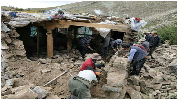今年雨水频繁,雨量较大,地质六队驻村工作队所在曲龙村部分村民房屋受到不同程度的损坏或倒塌。驻村工作队及时上报灾情,立即组织全村28名党员与村民开展了历时3天的生产自救,对村民受灾严重的倒塌房屋进行了维修,解决了实际困难。村民们都高兴的说:“再也不用住帐篷了!感谢共产党!感谢驻村工作队、村两委和全村党员!”
