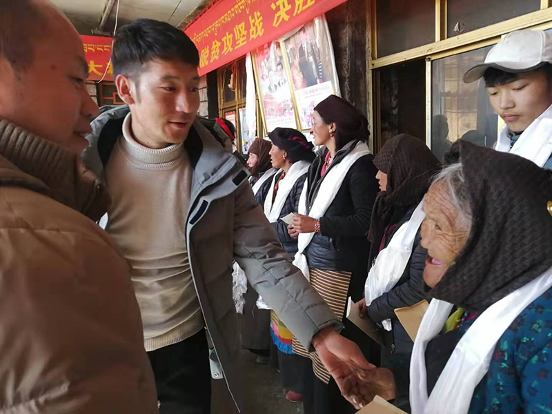 此次驻村换届工作公司党总支送去了公司中层以上干部捐助的帮扶资金共计7000元到十四户贫困家庭手中,为他们送去了亲人们的祝福。83岁的丹增老阿妈,含着晶莹的泪花感慨握着喻鹏飞书记的手感谢党,感谢亲人的无私奉献,让她在最困难时能得到安慰充实,生活也因此变得愈加美好!