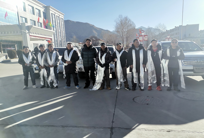 1月18日上午,地质二队举行了欢送仪式,次旺欧珠书记为即将出发的第九批驻村工作队队员献上了洁白的哈达,并为第九批驻村工作队各项工作顺利开展寄予美好的祝愿。