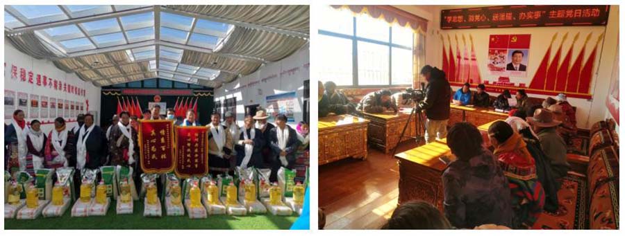 随后,西勘集团第一党支部联合“小个专”山水宾馆党支部与那曲市申扎县雄梅镇达果二村党支部开展支部架桥活动和以“学思想、送温暖、凝党心、办实事”为主题的主题党日活动。由第一党支部党员、“小个专”山水宾馆联合党支部书记普布占堆同志用通俗易懂的语言为达果二村全体党员深度解析了“习近平总书记考察西藏期间的重要讲话内容”,并向达果二村困难党员、残疾人员、70岁以上老人、建档立卡户5至9岁孩子捐赠过冬衣物。