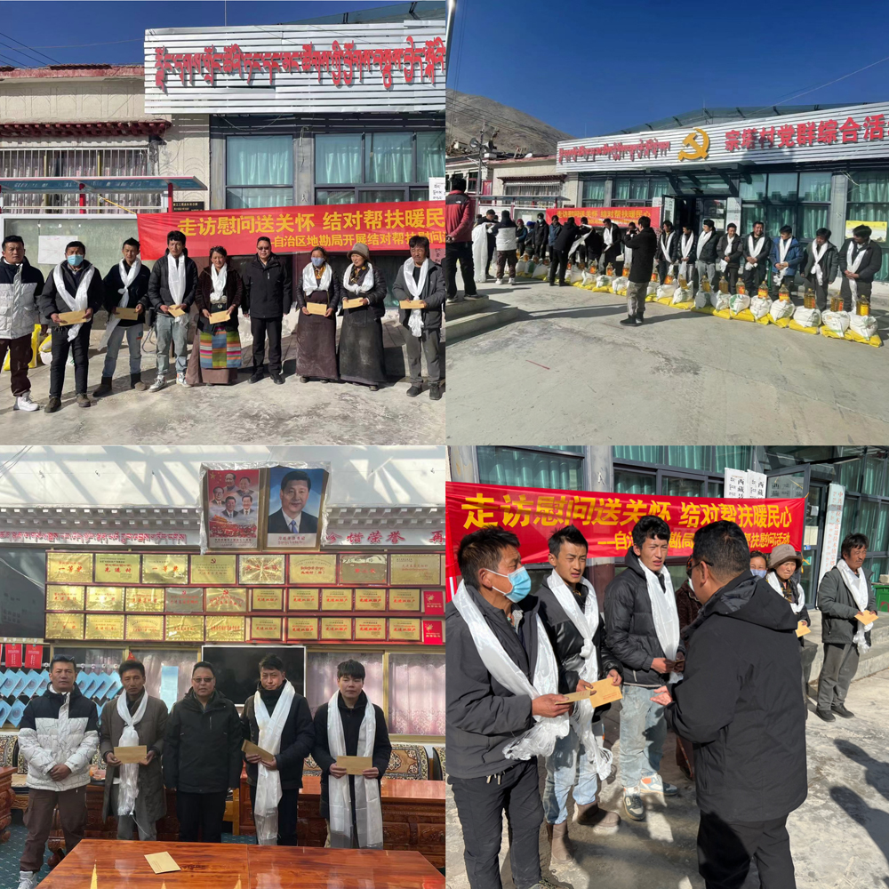 为推进驻村“结对帮扶”工作,2月9日,慰问组一行前往聂拉木县聂拉木镇宗塔村开展局机关结对帮扶工作,在宗塔村,古桑旺扎、达娃顿珠同志代表机关全体党员干部向结对帮扶户、三老人员等表达了诚挚的祝福并送去慰问金及生活必需品,共计1.3万元。村“两委”和帮扶对象发自内心感激区地勘局机关党员干部的热心帮扶。