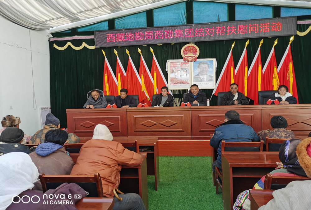 2023年2月17日,西勘集团党总支书记、总经理米玛顿珠带领单位强基办、工会负责人前往驻村点申扎县雄梅镇达果村开展结对帮扶等系列活动,共为达果村21个建档立卡户发放米、面、油等价值17000元的生活物资,并慰问了“村两委”、驻村工作队,并发放了慰问金。