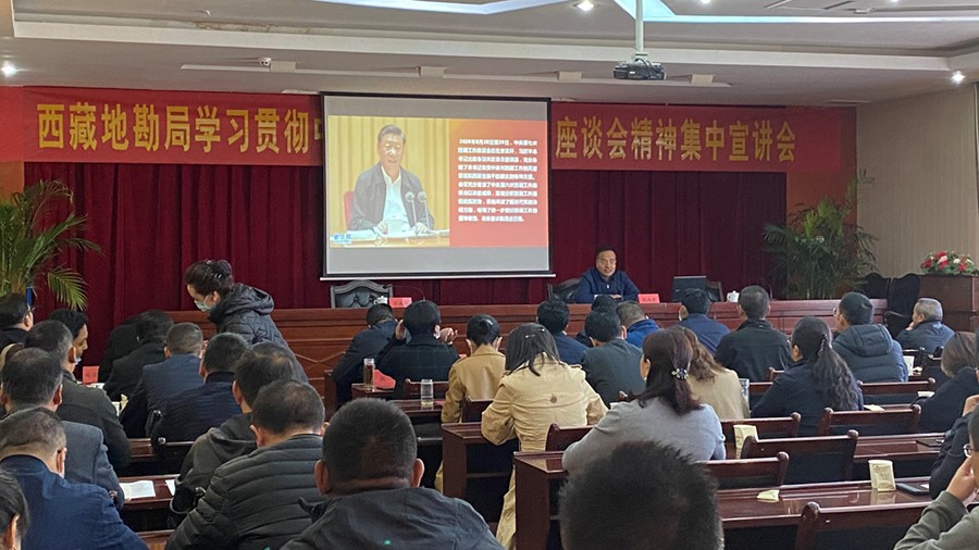 为深入学习贯彻落实中央第七次西藏工作座谈会精神,根据区党委宣传部通知精神,10月28日地勘局邀请区党委党校副校长孙向军为干部职工作学习贯彻中央第七次西藏工作座谈会精神专题辅导报告,在家局领导,局系统副处级以上干部和局属单位各部门负责同志、纪检监察干部、党务干部、党支部书记、干部职工代表90余人参加会议,会议由局党组成员、副局长张焕彬主持。