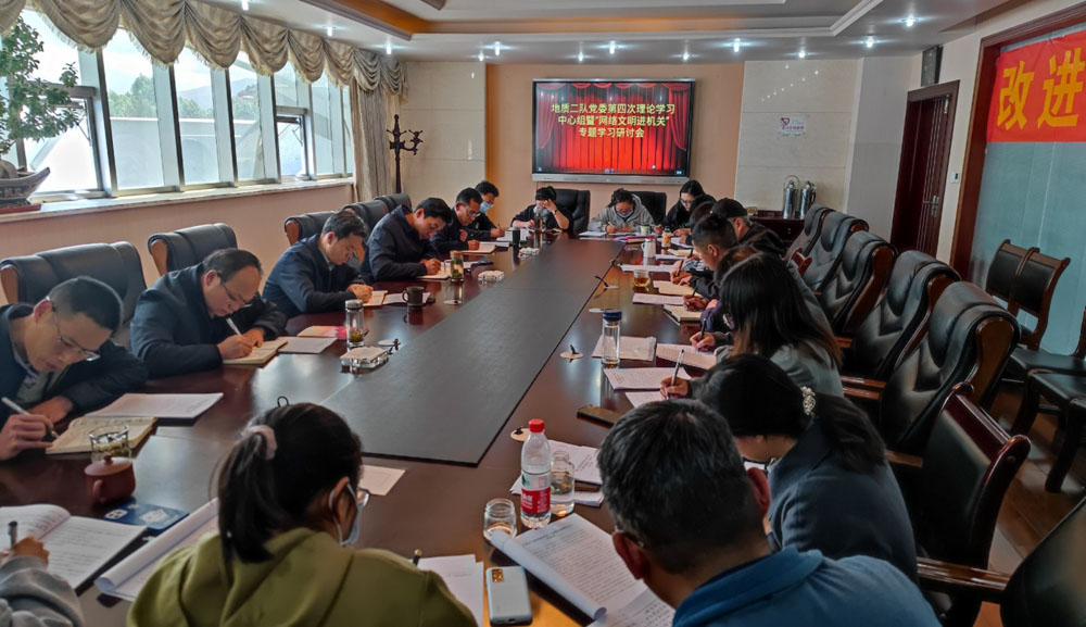 2022年4月28日下午,地质二队党委组织召开理论学习中心组暨“网络文明进机关”专题学习研讨会,会议由队党委书记、副队长次旺欧珠主持,在队队级干部、各部门负责人、各党支部书记参加了学习会议。