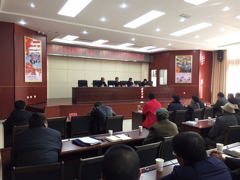 12月18日下午,自治区党委巡视四组“机动式”巡视自治区地勘局党委情况反馈会议在地勘局科技楼召开。会议由局党委书记巴桑主持并作了表态发言,区党委巡视办主任马玉魁作重要讲话,区党委巡视四组组长刘涛年通报巡视反馈意见。出席会议的领导同志有,局领导王衍彪、杨安文、杜光伟、张焕彬,纪检组组长周伟,巡视组副组长丁步春。全局副处级以上干部、机关全体干部职工、局属单位重要部门负责人以及老干部代表共计131人到会聆听巡视反馈。