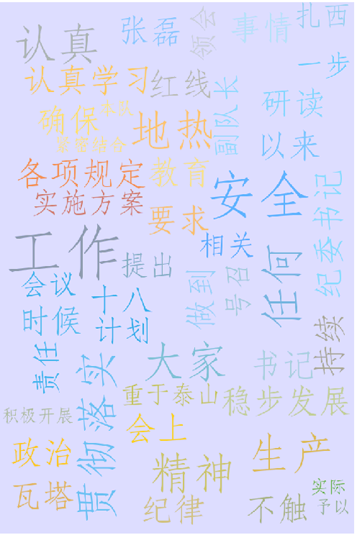会上,达瓦塔杰书记要求大家要认真学习研读党的十八大以来的各项规定,做到任何事情、任何时候都不触碰红线,确保地热队持续稳步发展。张磊纪委书记就贯彻落实政治纪律教育实施方案相关精神提出下一步工作计划。扎西副队长号召大家认真领会局2018安全生产工作会议精神,安全责任重于泰山,要紧密结合地热队工作实际,认真予以贯彻落实,并积极开展好本队安全生产工作。