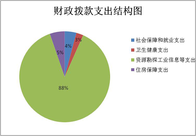 2021年度财政拨款支出4,053.58万元,主要用于以下方面:社会保障和就业支出168.45万元,占总支出的4.16%;卫生健康支出101.27万元,占总支出的2.50%;资源勘探工业信息等支出3,568.98万元,占总支出的88.04%;住房保障支出214.88万元,占总支出的5.30%。