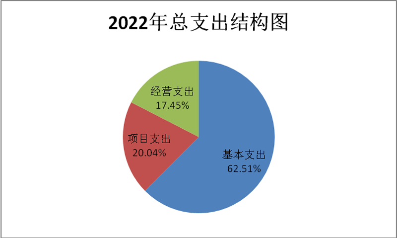 2022年度决算总支出为956.48万元,其中:基本支出597.90万元,占总支出比例62.51%;项目支出191.66万元,占总支出比例20.04%;经营支出166.92万元,占总支出比例17.45%。较比2021年度决算总支出1200.06万元,减少243.58万元,减少率20.30%。主要原因:2022年总收入减少,导致相应支出减少。