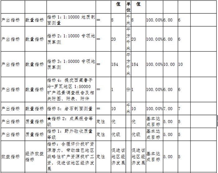 1.西藏仲巴县-改则县天公尼勒地区1∶5万地质矿产调查项目绩效自评表: