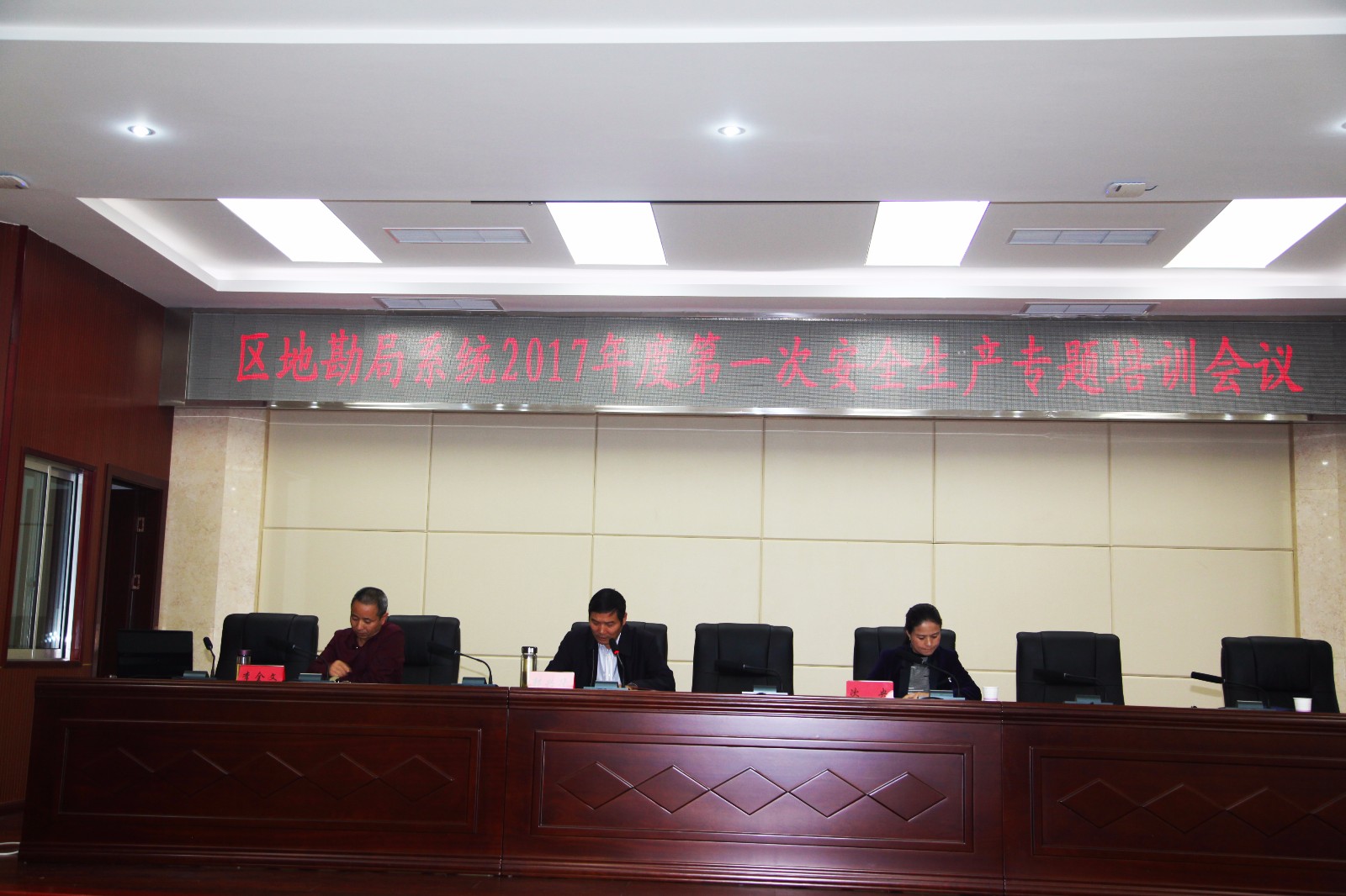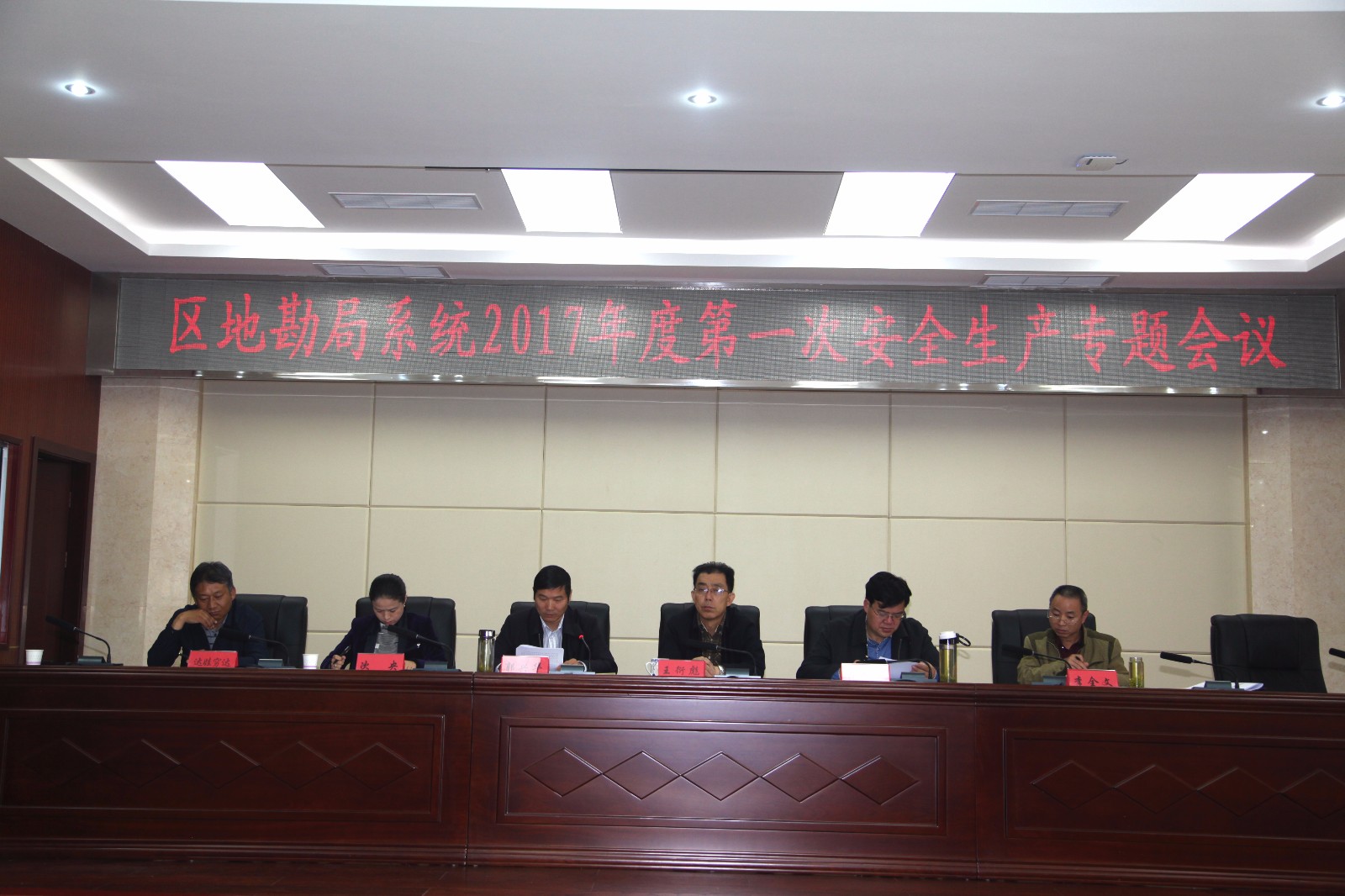 会议用一天时间,学习了区党委关于推进安全生产领域改革发展的实施意见和中央领导关于安全生产的重要论述摘要,传达了齐扎拉主席在自治区安委会2017年度第一次全体会议上的讲话和刘江副主席在全区安全生产工作电视电话会议上的讲话精神,通报了全局安全生产大检查情况、局属各单位贯彻落实安全生产保障措施情况、地热地质大队职工何小林因公死亡事件,全体参会人员开展了安全知识培训。