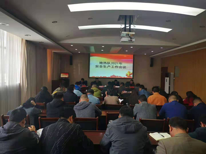 2021年5月8日下午,地热队召开了2021年工作会议暨安全生产会议。会议由队党委委员、总工程师荣峰主持。区地勘局党组成员、副局长谢渊,区地勘局经管处处长古桑旺扎、地勘处处长西洛朗杰莅临会议。队党委书记、副队长郭建慈,队党委委员、副队长樊磊磊出席了会议,大队中层及以上干部、2020年度先进个人及先进集体代表参加了会议。