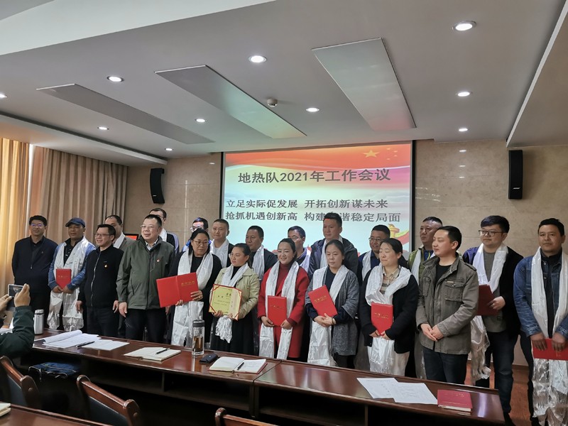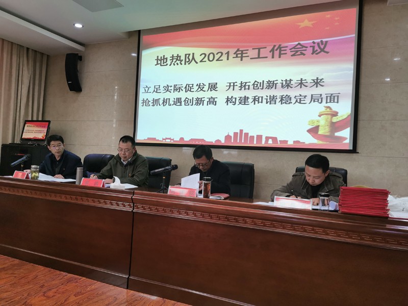 地勘局党组成员、副局长谢渊对地热队在2020年取得的成绩给予了充分的肯定,并在会上作了重要工作指示。谢渊副局长指出,2020年地热地质大队圆满完成了局党组安排的各项任务,为“十三五”规划的完美收官作出了贡献,2021年的工作思路为地热队“十四五”规划起好步、开好头奠定了基础,并对地热队未来的发展提出以下几点建议及意见:一要努力构建“学习型”地热队。深入学习习近平总书记新时代特色社会主义系列思想,尤其是加强“党史”“三更”教育学习,带领全队干部职工加强拓展市场的业务理论知识学习,大力倡导“请进来、走出去”的学习模式,加大同中国地调局及内地优秀地勘单位的学习交流;二要努力构建“服务型”地热地质大队。充分发挥地热队的主业优势,进一步增强服务意识,在构建国家清洁能源基地、能源保障及储备基地、建设国家生态安全屏障、服务国家重大工程、服务自然资源管理、强边战略、乡村振兴、脱贫攻坚等方面发挥更大的作用;三要努力构建“创新型”地热队。围绕自然资源部、地勘局“十四五”规划,创新发展思路,加强对地质科学技术装备、地质信息化的创新,在内部管理方面要促进科技成果的转换,创新与内地优秀地质单位的合作方式,加强优势互补,进一步加强人才队伍建设;四要努力构建“安全、和谐、稳定”型地热队。切实保障野外一线人员的生命安全,劳保用品、GPS等安全保障用品配备到位,紧绷安全防线,充分发挥青年团员、工会、妇联等群团建设的凝聚作用,加强地质文化建设;五要努力构建“廉洁型”地热队。大力开展“党史”“三更”教育、“帐篷支部”建设和党风廉政建设,全面落实从严治党,落实地勘局“五型”地质工作新局面,为建党100周年、西藏和平解放70周年打造和谐稳定的局面。