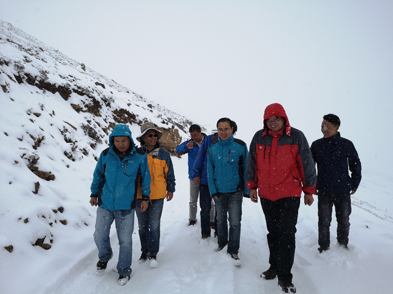 2018年9月30日至10月4日,西藏地勘局副局长张焕彬陪同成都地质调查中心研究员王立全、王保弟及王冬兵博士组成的专家组赴昌都地区对地质六队承担的“西南三江有色金属资源基地”二级项目下属的拉荣区调、卡贡区调、青果评价、冬仆鲁评价等四个委托业务进行野外验收。地勘局副总工程师曾庆高,地勘局地质勘查科技处处长西洛朗杰参加验收工作。