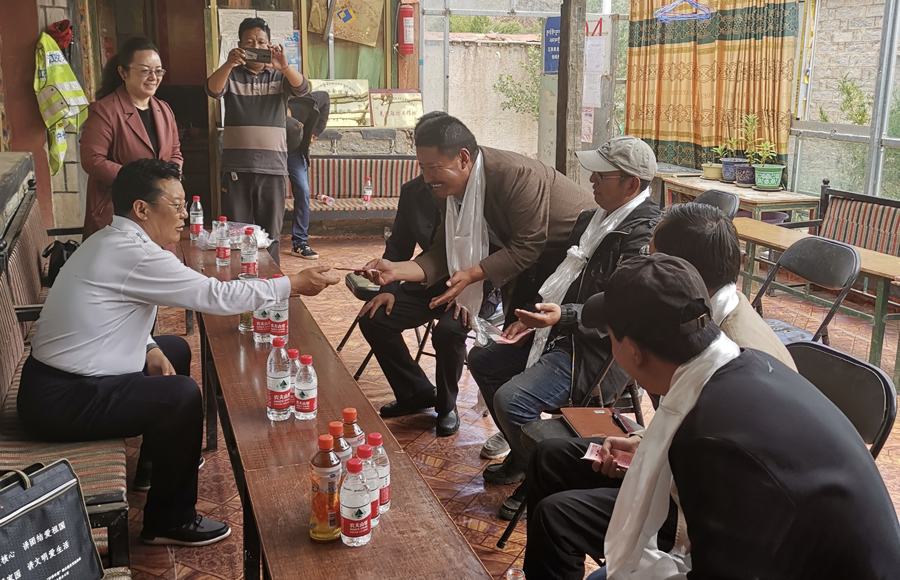 2019年8月7日,区地勘局党委书记、副局长巴桑,区地勘局计财处处长尼玛普赤和地热队党委副书记、队长拉巴次仁一行赴地热队驻日喀则江孜县龙马乡龙马、宗卓、强旺三个驻村工作点进行检查指导慰问工作。