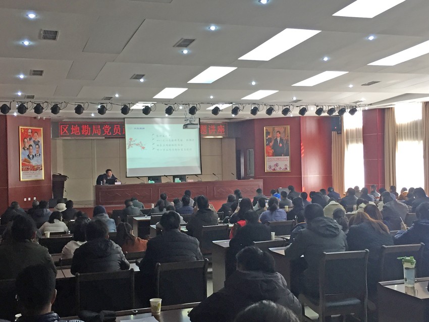 为深入贯彻党的十九届四中全会精神,扎实推进“不忘初心、牢记使命”主题教育向纵深开展,确保地勘系统广大党员干部职工准确把握全面从严治党要求。2019年11月22日,区地勘局特邀中央纪委监委第九批援藏干部,区纪委常委、监委委员汲传峰同志为地勘系统130余名党员干部举办了一场廉政讲座。