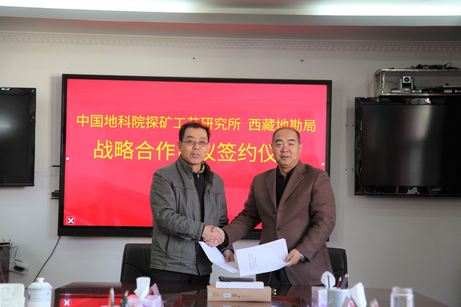 12月30日,西藏地勘局与中国地质科学院探矿工艺研究所(以下简称“工艺所”)在拉萨举行战略合作框架协议签约仪式,西藏地勘局党委副书记、局长王衍彪,探矿工艺所党委副书记、所长吴琳出席签约仪式并讲话。