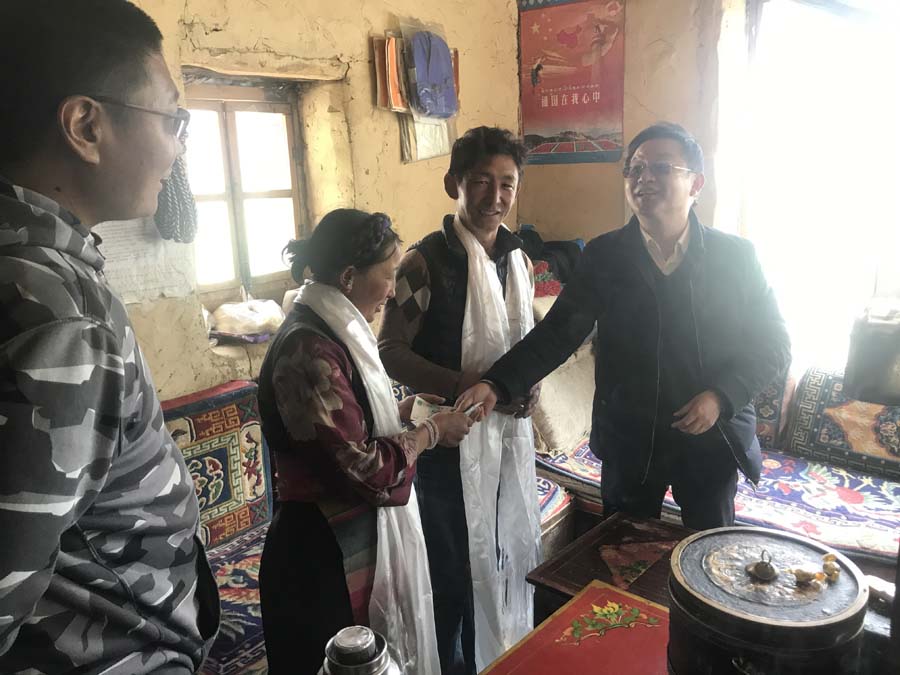 5月27日,杨安文副书记一行在昂仁县亚木乡许如村“两委”驻地开展局机关2020年上半年结对帮扶,以每户500元的标准,向33户建档立卡贫困户和3户边缘户发放慰问金达18000元并敬献哈达,把局机关党员干部的关爱送到贫困群众的心坎上。受局党委委托,杨安文副书记向各驻村工作队赠送慰问金,向吃苦耐劳、无私奉献的广大驻村队员表达了诚挚的敬意。