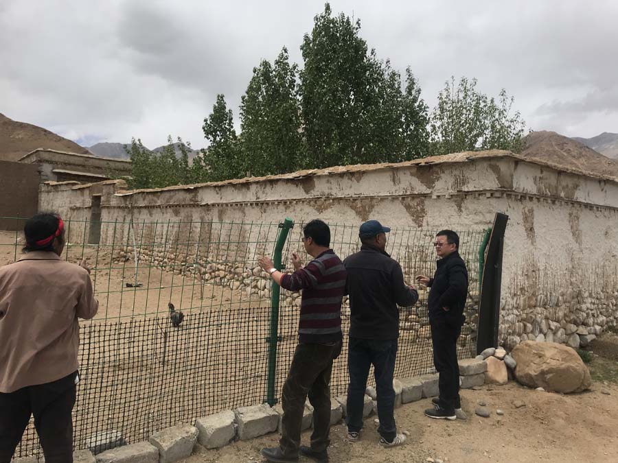 在日喀则市昂仁县秋窝乡龙木其村查看养鸡场运营情况
