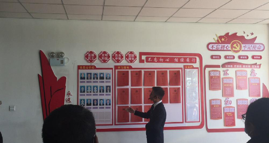 随后,工作人员介绍了党务公开栏,学习园地等工作开展情况,展示了地矿物资公司党建工作的新形象新面貌。