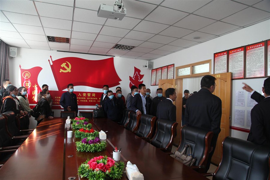 金秋十月,硕果满枝,在这丰收的季节,区地勘局第六次党建工作现场推进会于2020年10月12日走进西藏地矿物资供销公司。本次会议局党组给予极大关心、支持,局党组书记、副局长巴桑同志亲临会场指导,局党组成员、副局长张焕彬出席并主持座谈交流会,出席会议的还有卓玛、拉巴次仁等领导同志。局属单位的党政主要负责同志、纪委书记、党办主任、党支部书记代表和局政工人事处、办公室、经管处、计审处的负责同志以及机关三个党支部的支部书记临会观摩交流学习。
