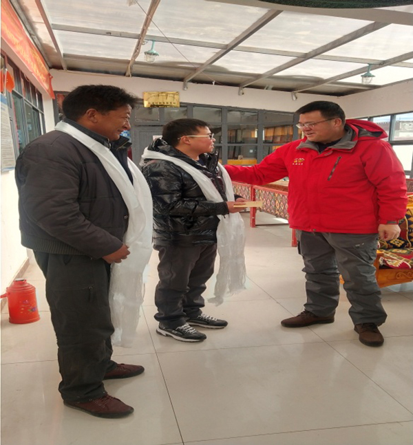 两位局领导代表局党组向各驻村工作队,发放疫情防控物资(口罩、消毒液、消毒湿巾等)慰问品,嘱咐大家保重身体,预祝大家“春节、藏历新年”节日愉快。