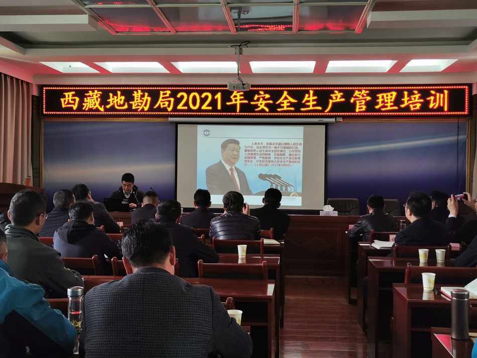2021年4月13日,西藏地勘局召开2021年安全生产工作会议暨安全生产管理培训,局党组副书记、副局长杨安文主持会议。局党组书记、副局长巴桑参加会议并发表讲话。局安委会其他成员,局属各单位党政负责人、分管安全生产领导、安保科长和大队安全员共45人参加会议。