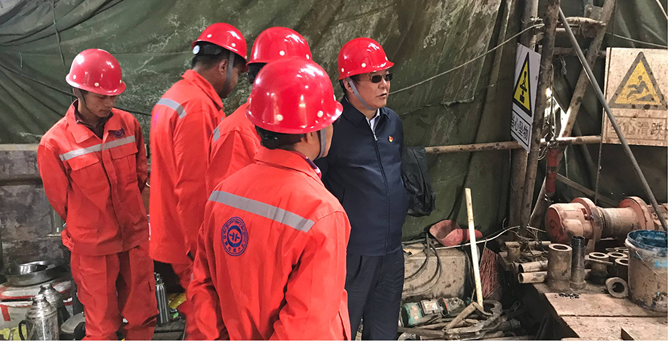 接着,巴桑书记走近钻井作业平台,伴着机器轰鸣声,认真查看了钻机运转情况,详细询问了钻井深度、岩芯采样率、环境保护和安全生产防护措施等落实情况。他一边查看一边叮嘱,要切实保证钻探工程质量,更要落实好安全生产操作规程,确保工作人员生命财产安全。