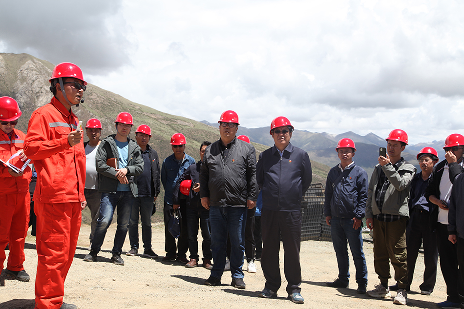 天蓝水清,碧草如茵。6月10日,局党组书记、副局长巴桑,局党组成员、副局长谢渊与局属单位及局机关党员领导干部和相关部门负责人、支部书记代表一同前往地质六队位于山南市曲松县海拔近4500米的罗布莎铬铁矿勘查项目部,一同观摩学习野外“帐篷支部”的好经验好做法,切身体验钻井作业平台干部职工忘我的工作状态和艰苦的生活环境,进一步激发广大党员干部职工“以献身地质事业为荣,以艰苦奋斗为荣,以找矿立功为荣”的地质“三光荣”精神。