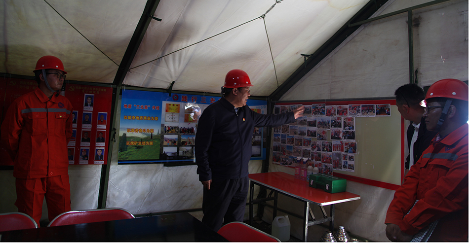 巴桑书记看着一幅幅照片高兴地说,加强野外党组织建设是现实所需,非常重要,通过开展野外“帐篷支部”建设,就是为大力弘扬“支部建在连上”光荣传统,践行区党委常委刘江同志提出的党建和业务工作“你就是我,我就是你”深度融合理念。他强调,我们要坚持以习近平新时代中国特色社会主义思想为指导,增强“四个意识”、坚定“四个自信”、做到“两个维护”,继续保持“以献身地质事业为荣,以艰苦奋斗为荣,以找矿立功为荣”的工作劲头,进一步立足于地勘工作实际,大力聚焦基层党建,不断强化组织推动,切实发挥好榜样标杆作用,为服务好地方经济,助力全面实施乡村振兴战略作出地勘人的不懈努力。