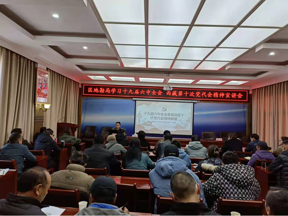 根据《西藏地勘局深入学习宣传贯彻党的十九届六中全会精神工作方案》和西藏自治区第十次党代会学习要求,为深入学习宣传贯彻党的十九届六中全会和西藏自治区第十次党代会精神,更好的抓好局退工委党建工作,更好的把两会精神及时传达给每一位退休干部职工,让广大退休职工了解掌握党的方针、政策和工作部署。12月8日上午,局退工委邀请自治区党校老师,组织开展了学习十九届六中全会和西藏自治区第十次党代会精神宣讲辅导会。宣讲会由局党组成员、副局长谢渊主持,局退工委及在拉萨退休各支部委员、局属各单位工会主席、各单位强基办负责人及安委会成员等六十多人参加学习聆听。