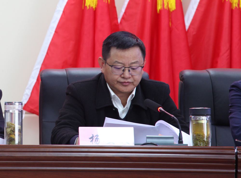 会上,局党组成员、副局长杜光伟传达了自治区人民政府《领导批示》。批示充分肯定了我局2021年在优势矿产资源勘查、羌塘油气资源勘查前期论证、支撑自然资源管理、地质灾害勘查防治以及服务民生等方面取得的成绩,并对2022年地勘局全面工作提出了更高要求,以优异成绩喜迎党的二十大胜利召开。