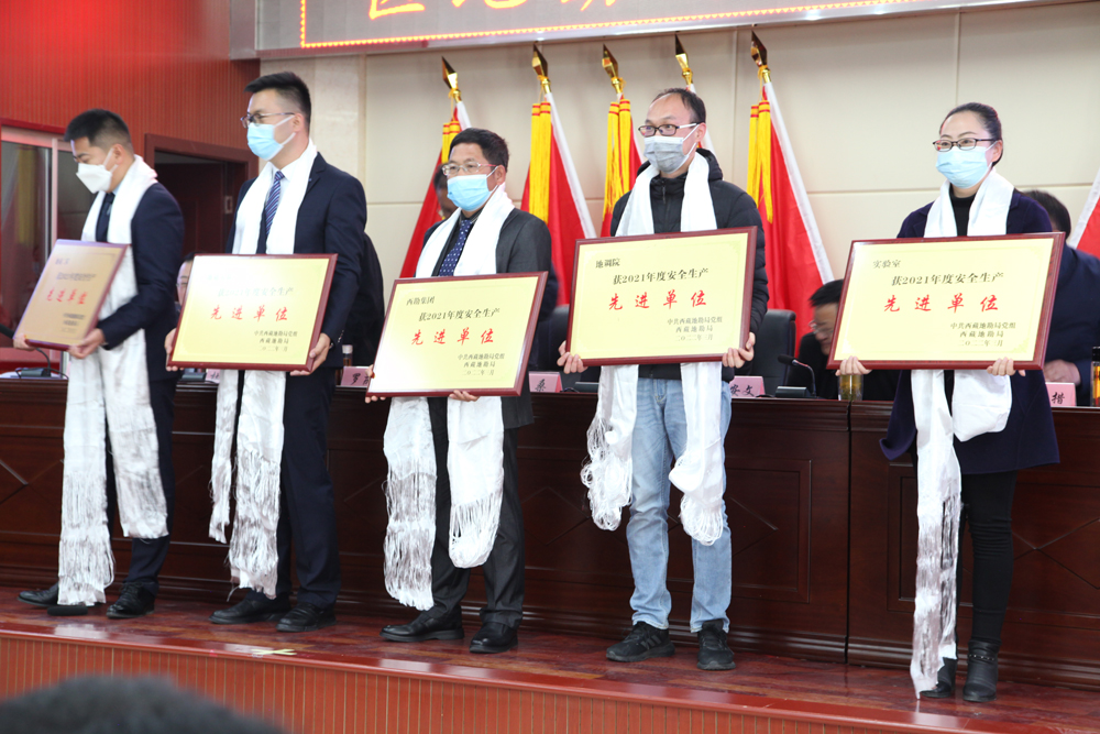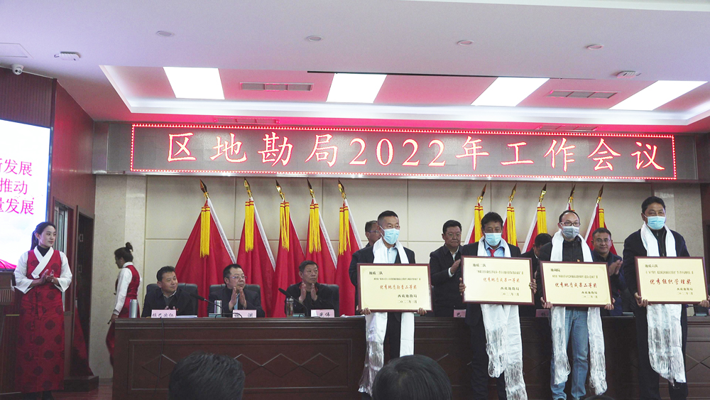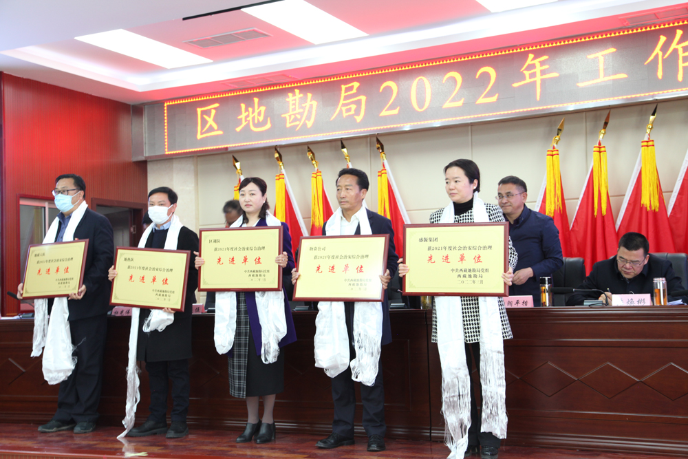 会上还对2021年度优秀地勘项目、先进集体与先进个人、社会治安综合治理和安全生产先进单位进行了表彰,地质五队和地质六队作了交流发言。同时,局属单位代表与西藏地勘局签订了2022年度社会治安综合治理、安全生产、保密工作责任书。