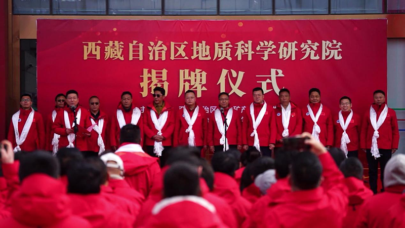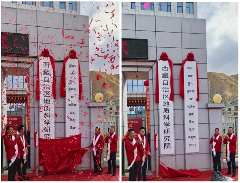 揭牌仪式最后,西藏自治区地勘局党组书记、副局长普布,党组副书记、局长张焕彬与地质科学研究院主要负责同志一起为西藏自治区地质科学研究院揭牌。此次地质科学研究院的揭牌成立,是自治区顺应地质工作转型升级趋势、整合优势资源、提升科技创新能力、强化公益服务职能的重要战略举措,将为西藏地质事业高质量发展注入强劲科研动力。